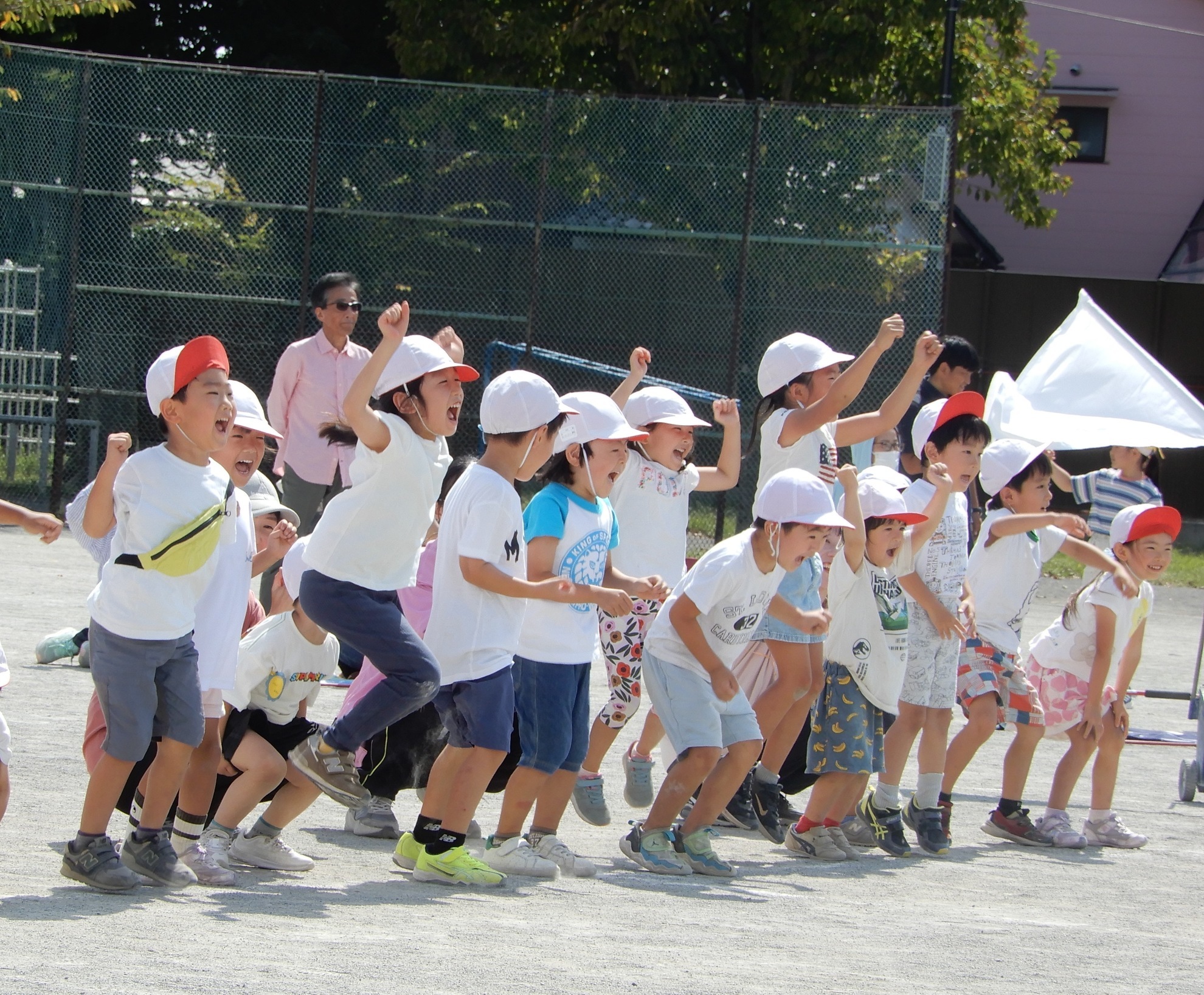 大人の本気や楽しさ、やる気、喜びの姿を間近で見て、応援していた子どもたちの心は動きました。幼稚園の運動会は、参加したすべての人たちと共に喜んだり、悔しがったりしながら、人の心に触れ、一人ひとりが全力を尽くした育ち合いの場となりました。